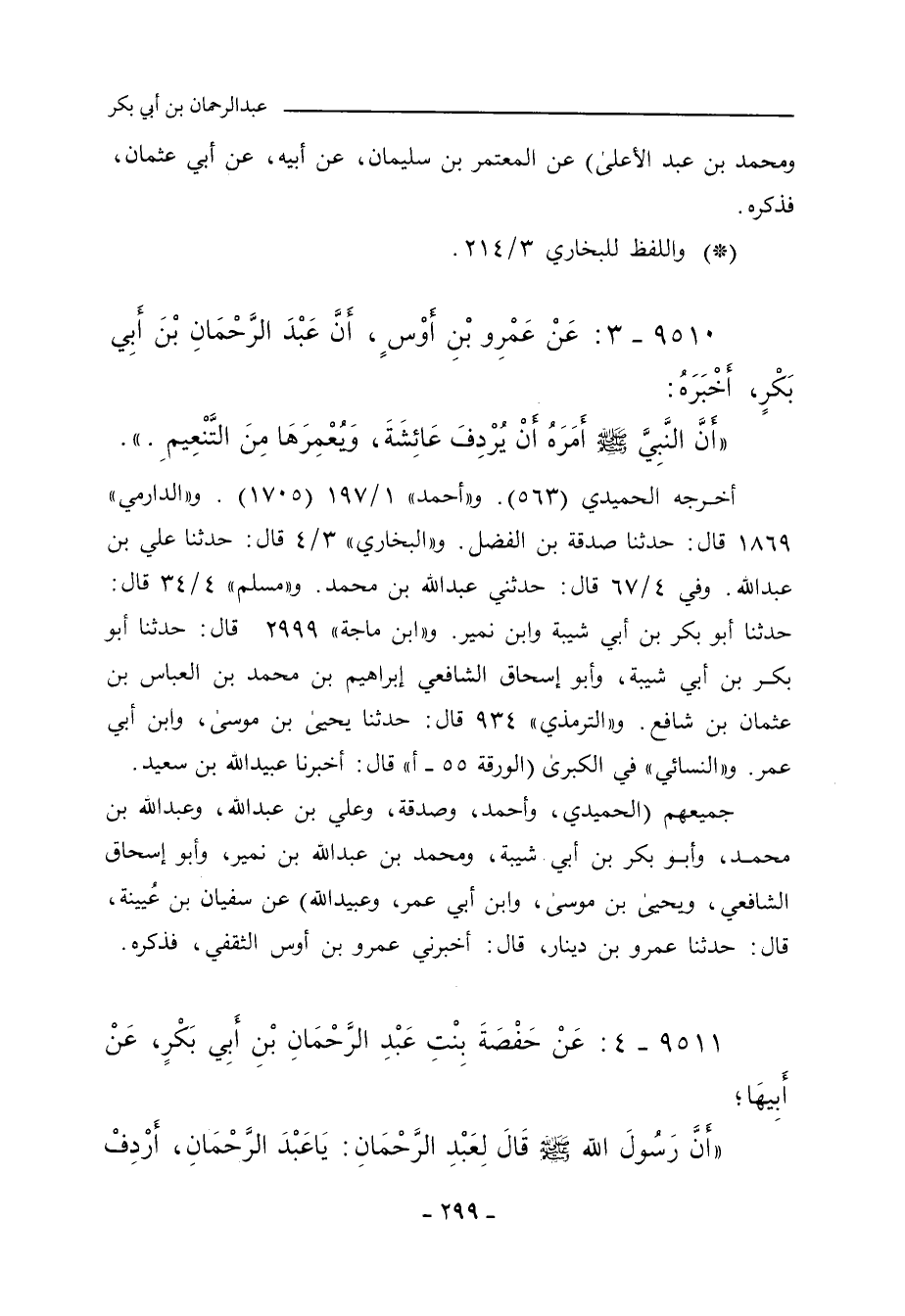 ٩٥١٠ - عَنْ عَمْرِو بْنِ أَوْسٍ الثَّقَفِيِّ، قَالَ أَخْبَرَنِي عَبْدُ الرَّحْمَانِ بْنُ أَبِي بَكْرٍ قَالَ: