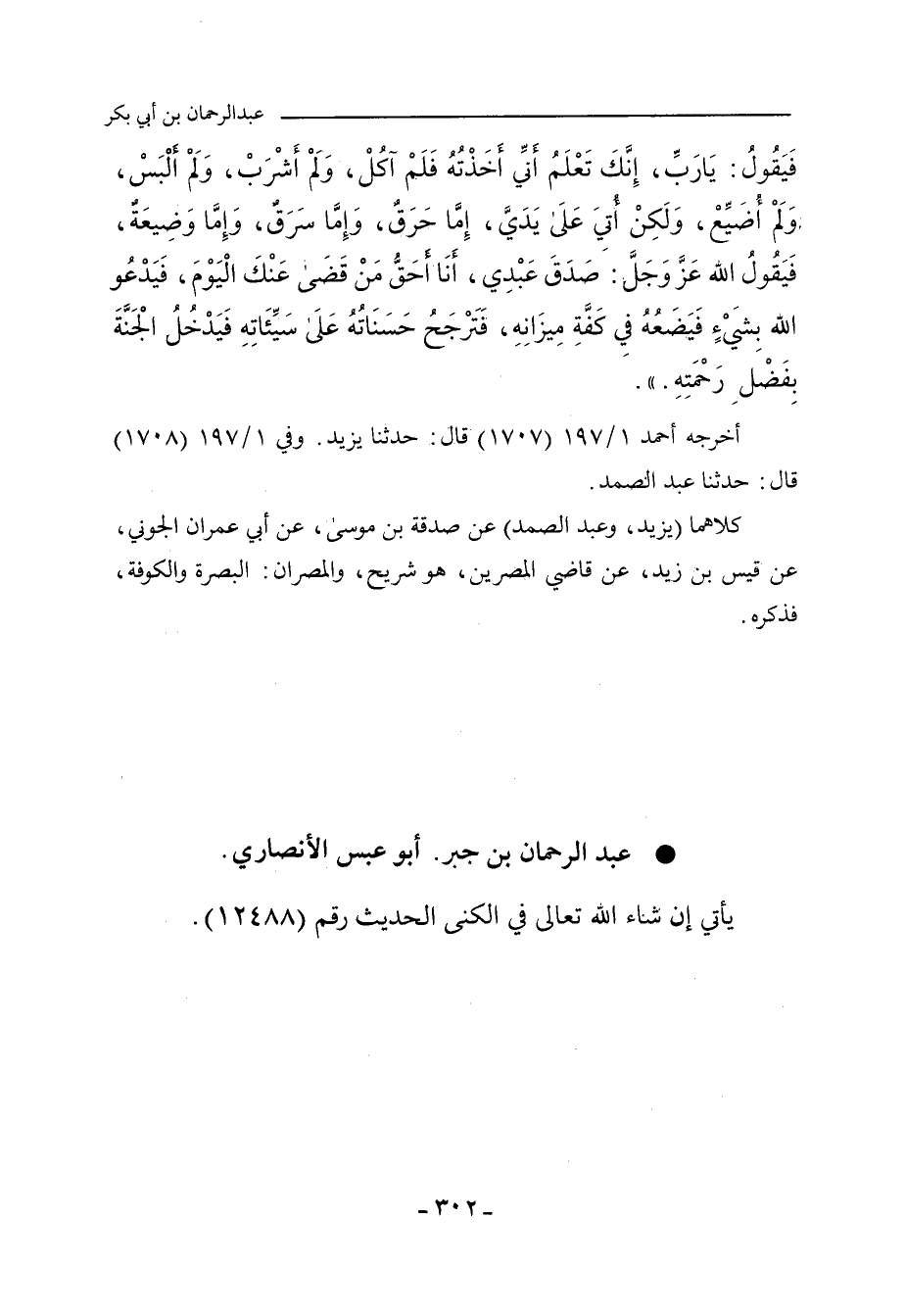 كلاهما (يزيد، وعبد الصمد) عن صدقة بن موسى، عن أبي عمران الجوني، عن قيس بن زيد، عن قاضي المِصْرَين، فذكره.