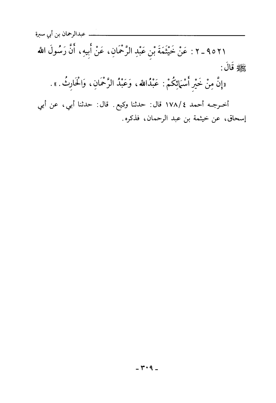٩٥٢١ - عَنْ خَيْثَمَةَ بْنِ عَبْدِ الرَّحْمَانِ، عَنْ أَبِيهِ، أَنَّ رَسُولَ اللهِ صلى الله عليه وسلم قَالَ: