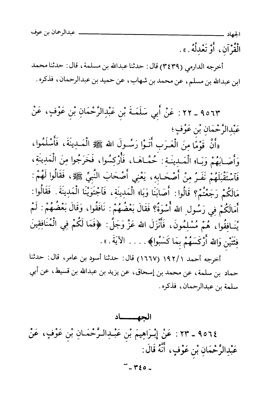 ٩٥٦٣ - عَنْ أَبِي سَلَمَةَ بْنِ عَبْدِ الرَّحْمَانِ بْنِ عَوْفٍ، عَنْ عَبْدِ الرَّحْمَانِ بْنِ عَوْفٍ؛