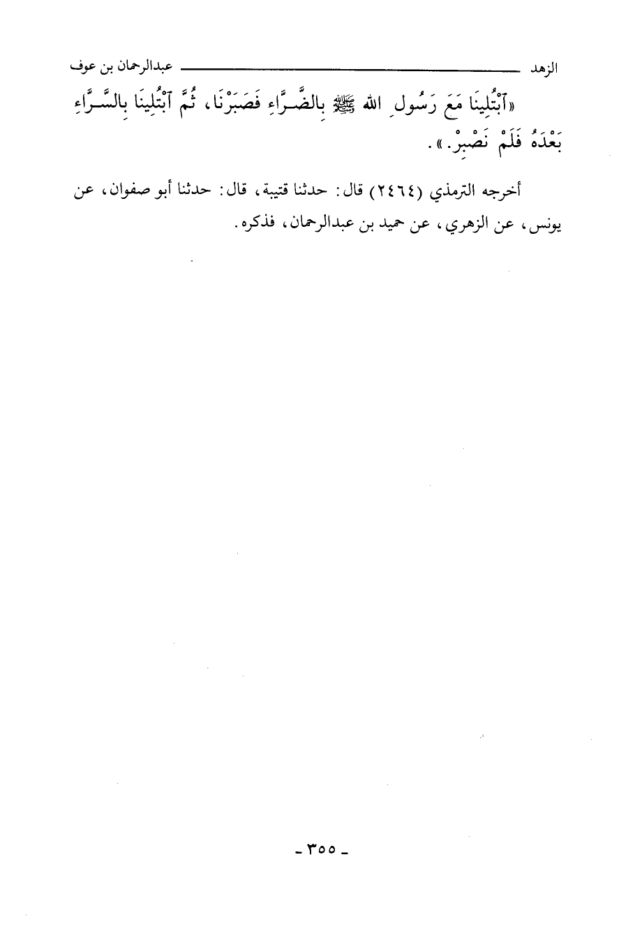 ابْتُلِينَا مَعَ رَسُولِ الله صلى الله عليه وسلم بِالضَّرِّاءِ فَصَبَرْنَا، ثُمَّ ابْتُلِينَا بِالسَّرَّاءِ بَعْدَهُ فَلَمْ نَصْبِرْ.
