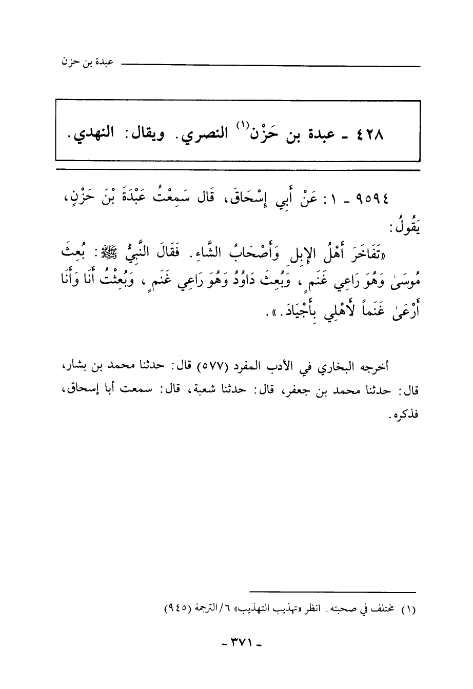 ٩٥٩٤ - عَنْ أَبِي إِسْحَاقَ؛ سَمِعْتُ عَبْدَةَ بْنَ حَزْنٍ يَقُولُ: