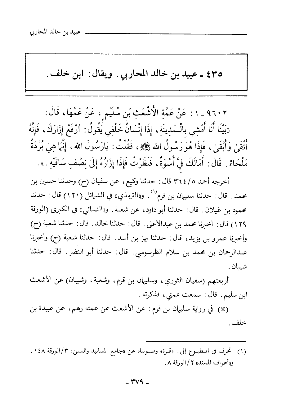 ٤٣٠ - عُبَيْد بن خالد الْمُحَارِبي. ويقال: ابن خلف.