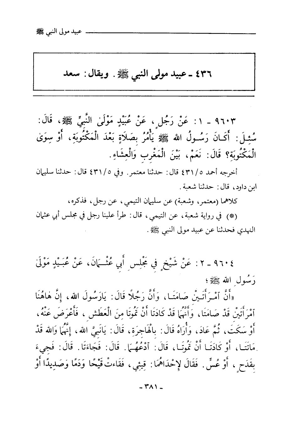 ٤٣١ - عُبَيْد مَوْلى النَّبِيِّ صلى الله عليه وسلم ويُقال: سَعْد