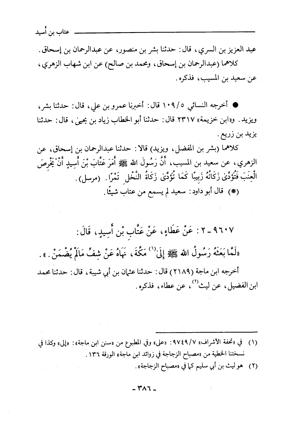أَنَّ رَسُولَ اللهِ صلى الله عليه وسلم أَمَرَ عَتَّابَ بْنَ أَسِيدٍ أَنْ يَخْرِصَ الْعِنَبَ، فَتُؤَدَّى زَكَاتُهُ زَبِيبًا، كَمَا تُؤَدَّى زَكَاةُ النَّخْلِ تَمْرًا. مرسلٌ.