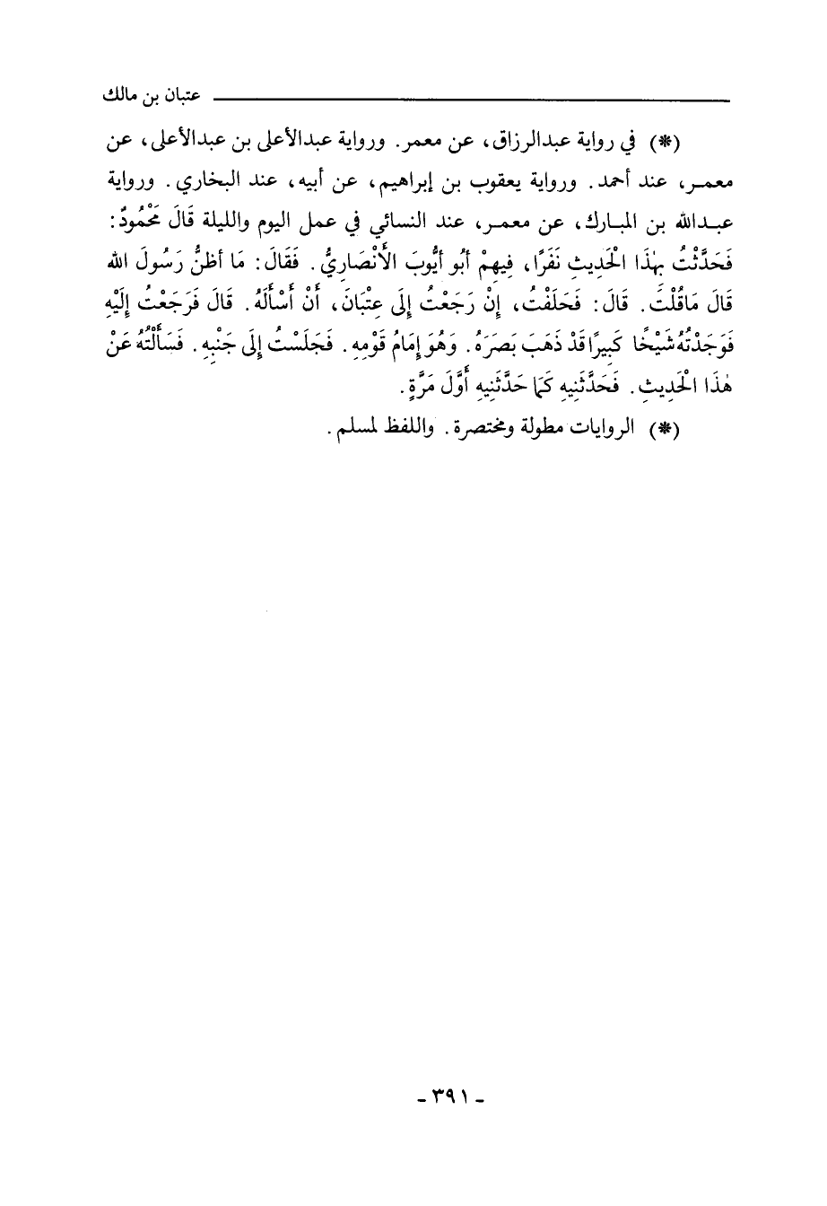 - وفي رواية: عَنِ الزُّهْرِيِّ، عَنْ مَحْمُودِ بْنِ الرَّبِيعِ الأَنْصَارِيِّ، وَكَانَ يَزْعُمُ أَنَّهُ قَدْ أَدْرَكَ رَسُولَ اللهِ صلى الله عليه وسلم وَهُوَ ابْنُ خَمْسِ سِنِينَ، وَزَعَمَ أَنَّهُ عَقَلَ مَجَّةً مَجَّهَا رَسُولُ اللهِ صلى الله عليه وسلم مِنْ دَلْوٍ مُعَلَّقٍ فِي دَارِهِمْ. مختصرٌ.