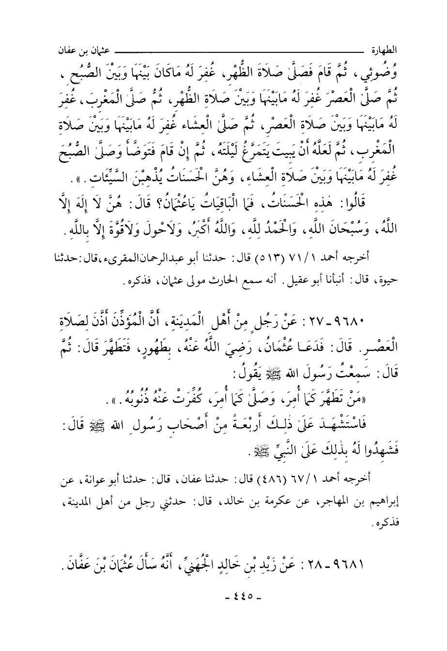 ٩٦٨٠ - عَنْ رَجُلٍ مِنْ أَهْلِ الْمَدِيَنِةِ، أَنَّ الْمُؤَذِّنَ أَذَّنَ لِصَلَاةِ الْعَصْرِ، قَالَ: فَدَعَا عُثْمَانُ، بِطَهُورٍ، فَتَطَهَّرَ، قَالَ: ثُمَّ قَالَ: سَمِعْتُ رَسُولَ اللهِ صلى الله عليه وسلم يَقُولُ: