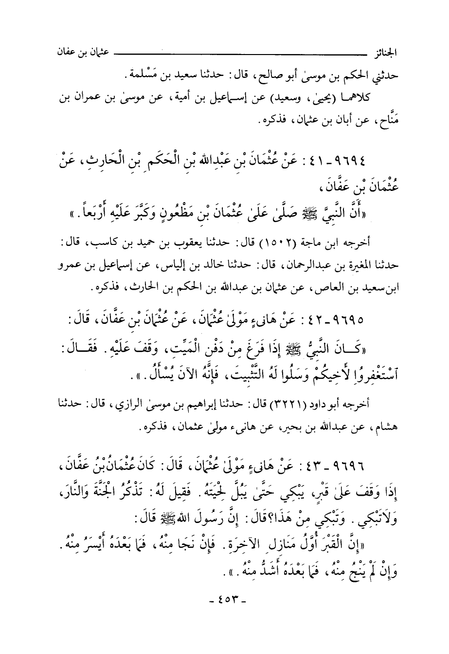 ٩٦٩٥ - عَنْ هَانِئٍ، مَوْلَى عُثْمَانَ، عَنْ عُثْمَانَ بْنِ عَفَّانَ، قَالَ: