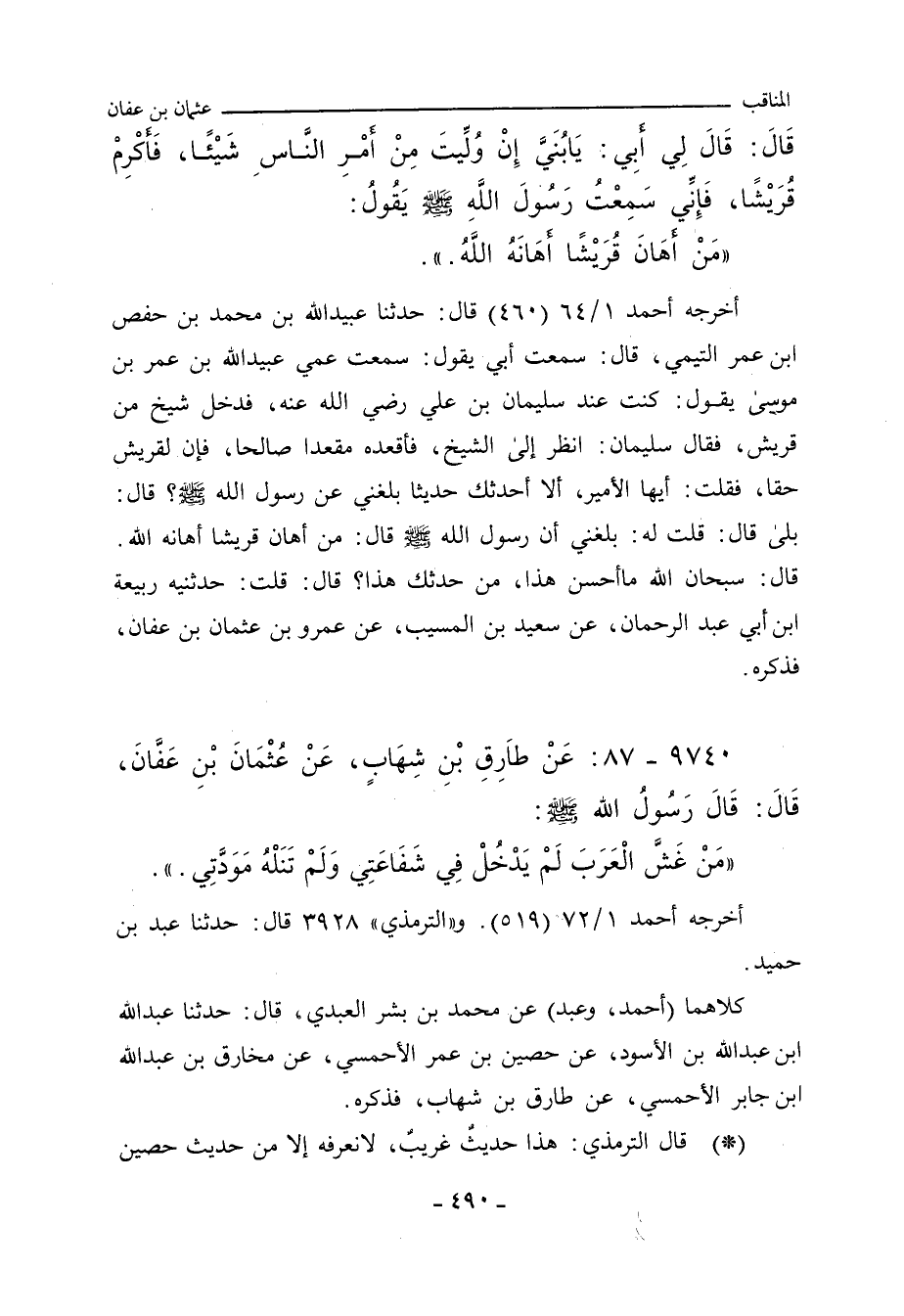 أخرجه أحمد ١/ ٦٤ (٤٦٠)، عن عُبَيْد الله بن مُحَمد بن حَفْص بن عُمَر التَّيْمِي، قال: سَمِعْتُ أَبي مُحَمد بن حَفْص بن عُمَر بن مُوسَى، قال: سَمِعْتُ عَمِّي عُبَيْد الله بن عُمَر بن مُوسَى يقول: حدَّثنا رَبِيعة بن أَبي عَبْد الرَّحْمان، عن سَعِيد بن المُسَيَّب، عن عَمْرو بن عُثْمان، فذكره.