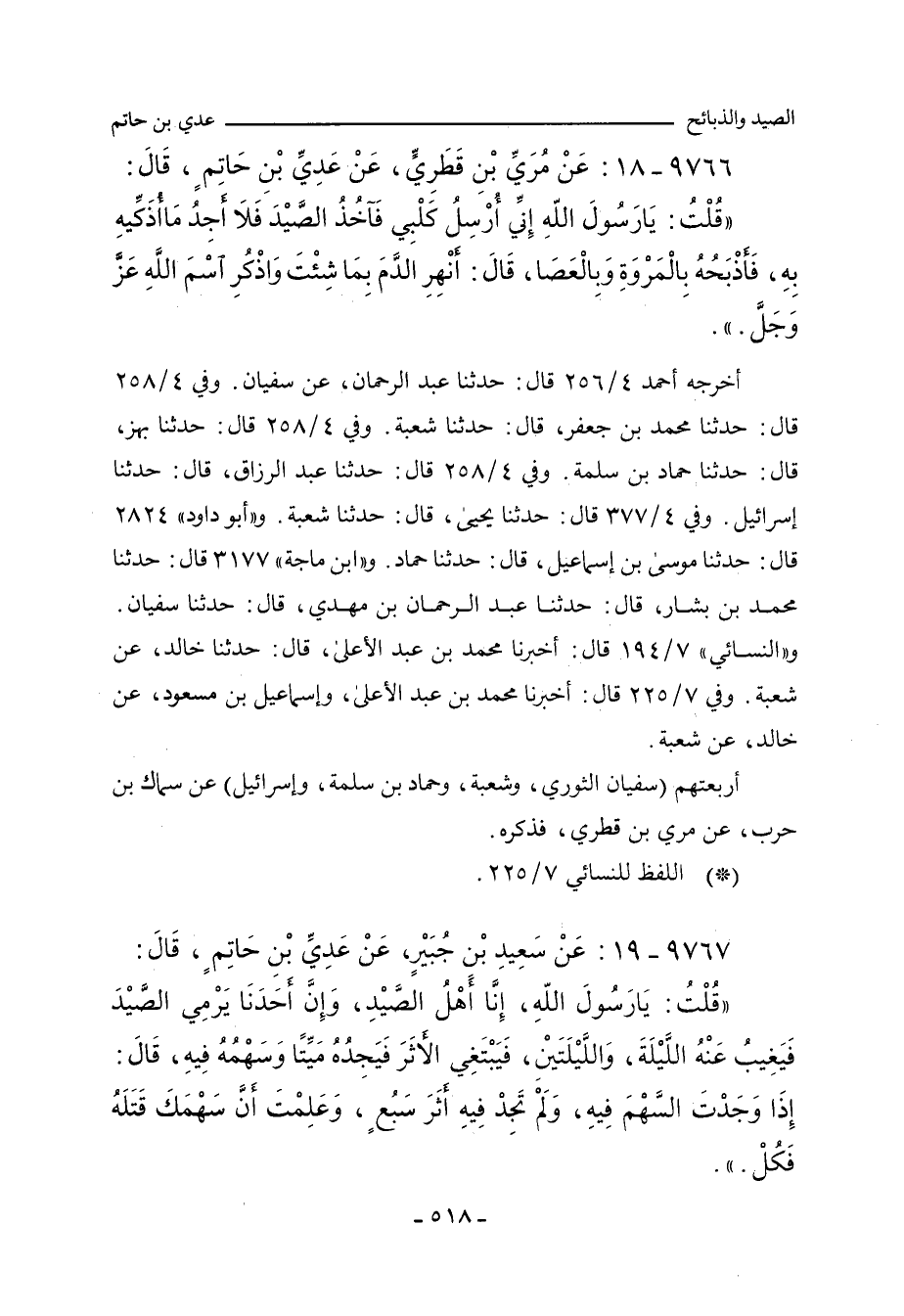 ٩٧٦٦ - عَنْ مُرَيِّ بْنِ قَطَرِيٍّ، عَنْ عَدِيَّ بْنَ حَاتِمٍ، قَالَ: