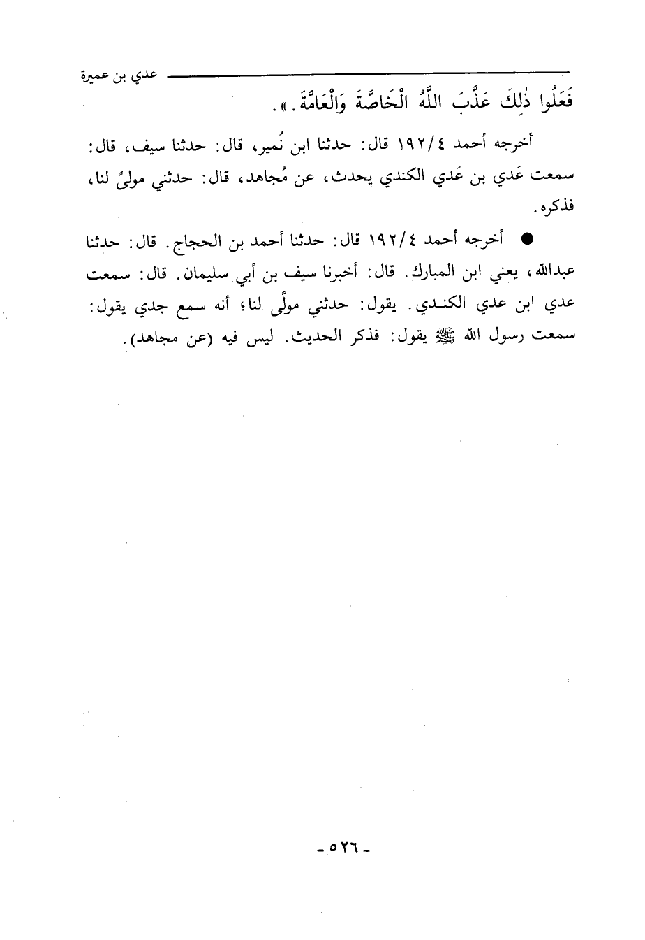 - أخرجه أحمد ٤/ ١٩٢ (١٧٨٧٧) قال: حدَّثنا أحمد بن الحَجَّاج، قال: حدَّثنا عَبْد الله، يعني ابن المُبَارك، قال: أنبأنا سَيْف بن أَبي سُلَيْمان، قال: سَمِعْتُ عَدِي بن عَدِي الكِنْدِي يقول: حدَّثني مَوْلًى لنا، أنه سَمِعَ جَدِّي يَقُولُ: سَمِعْتُ رَسُولَ اللهِ صلى الله عليه وسلم يَقُولُ: