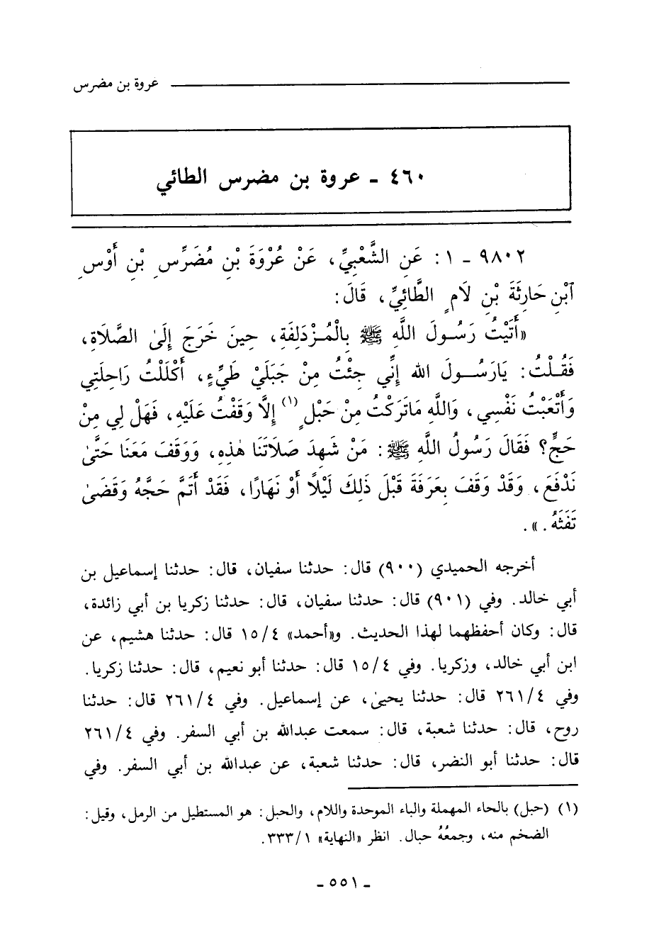 ٤٥١ - عُرْوَة بن مُضَرِّس الطَّائِيُّ