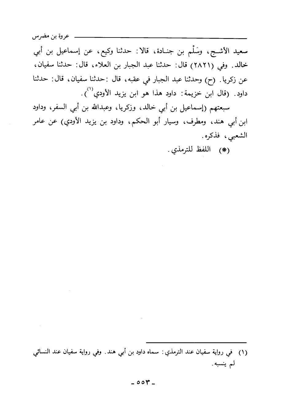 سَعِيد الأَشَج، وسَلْم بن جُنَادة، قالا: حدَّثنا وَكِيع، عن إِسْماعِيل بن أَبي خالد. وفي (٢٨٢١) قال: حدَّثنا عَبْد الجَبَّار بن العَلَاء، حدَّثنا سُفْيان، عن زكريا (ح) وحدَّثنا عَبْد الجَبَّار في عَقِبِهِ، حدَّثنا سُفْيان، حدَّثنا داود (قال ابن خُزَيْمة: داود هذا هو ابن يَزِيد الأَوْدِي".