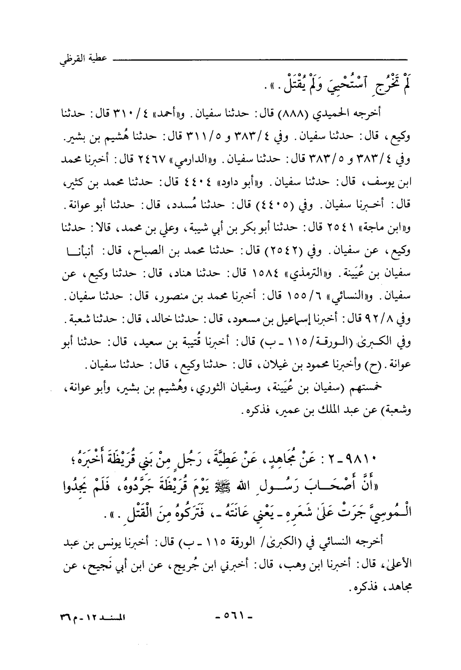 ٩٨١٠ - عَنْ مُجَاهِدٍ، عَنْ عَطِيَّةَ، رَجُلٍ مِنْ بَنِي قُرَيْظةَ، أَخْبَرَهُ؛