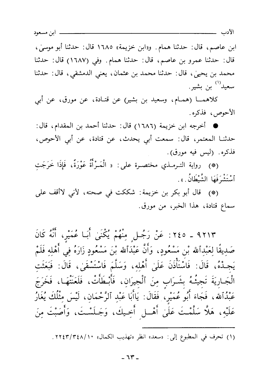 كلاهما (همام، وسعيد بن بشير) عن قتادة، عن مورق العجلي، عن أبي الأحوص، فذكره.
