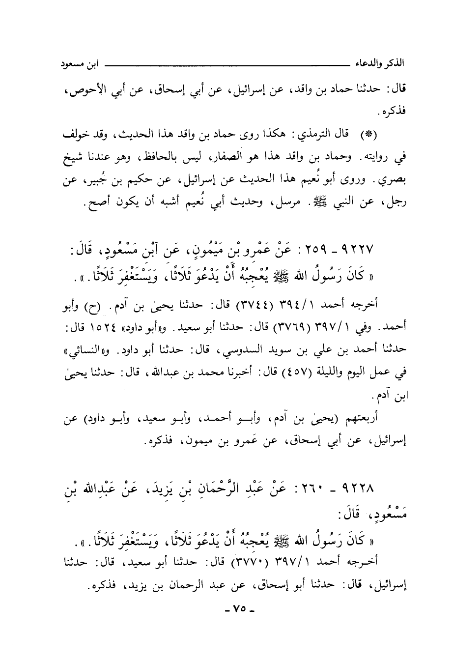 ٩٢٢٨ - عَنْ عَبْدِ الرَّحْمَانِ بْنِ يَزِيدَ، عَنْ عَبْداللهِ بْنِ مَسْعُودٍ، قَالَ: