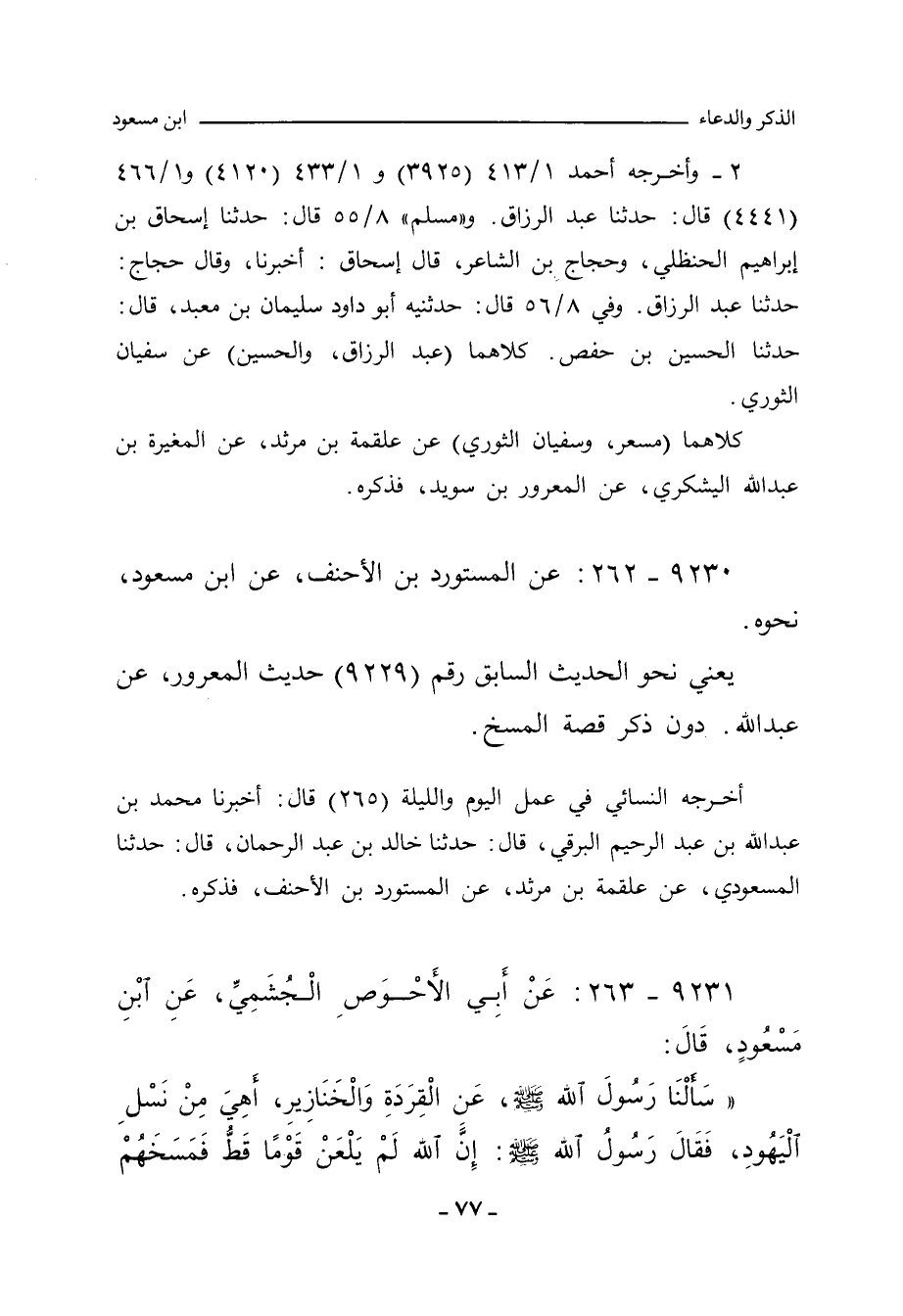 ٩٢٣١ - عَنْ أَبِي الأَحْوَصِ الْجُشَمِيِّ، عَنِ ابْنِ مَسْعُودٍ، قَالَ:
