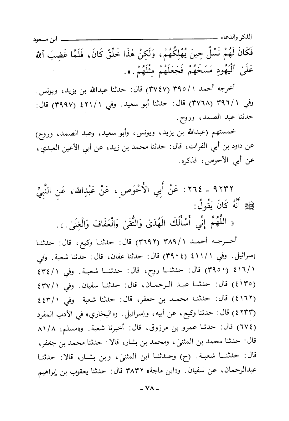 ٩٢٣٢ - عَنْ أَبِي الأَحْوَصِ، عَنْ عَبْداللهِ، عَنِ النَّبِيِّ صلى الله عليه وسلم، أَنَّهُ كَانَ يَقُولُ: