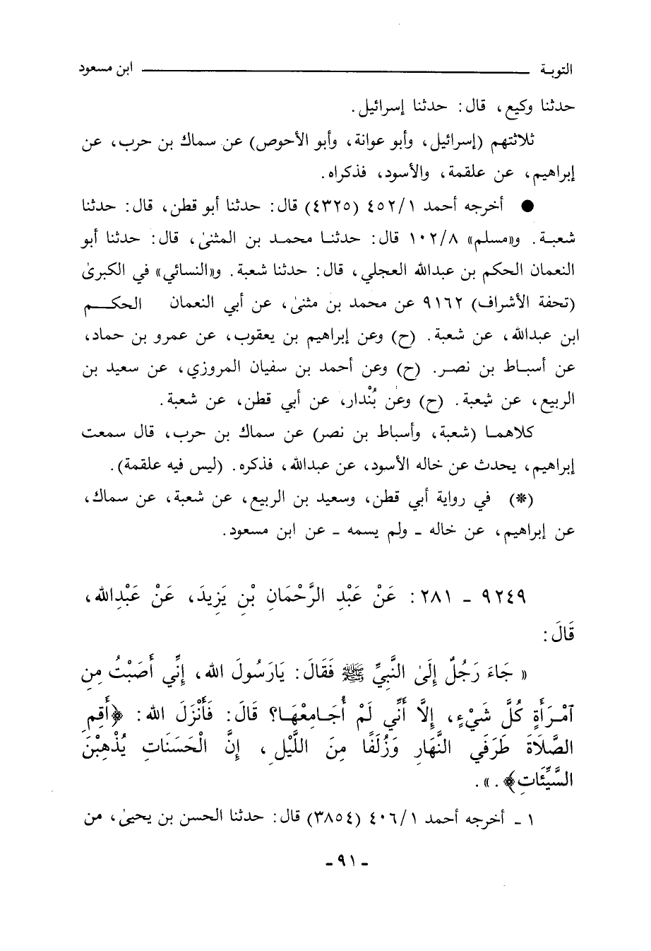 ٩٢٤٩ - عن عبد الرحمن بن يزيد، عَنْ عَبْداللهِ، قَالَ: