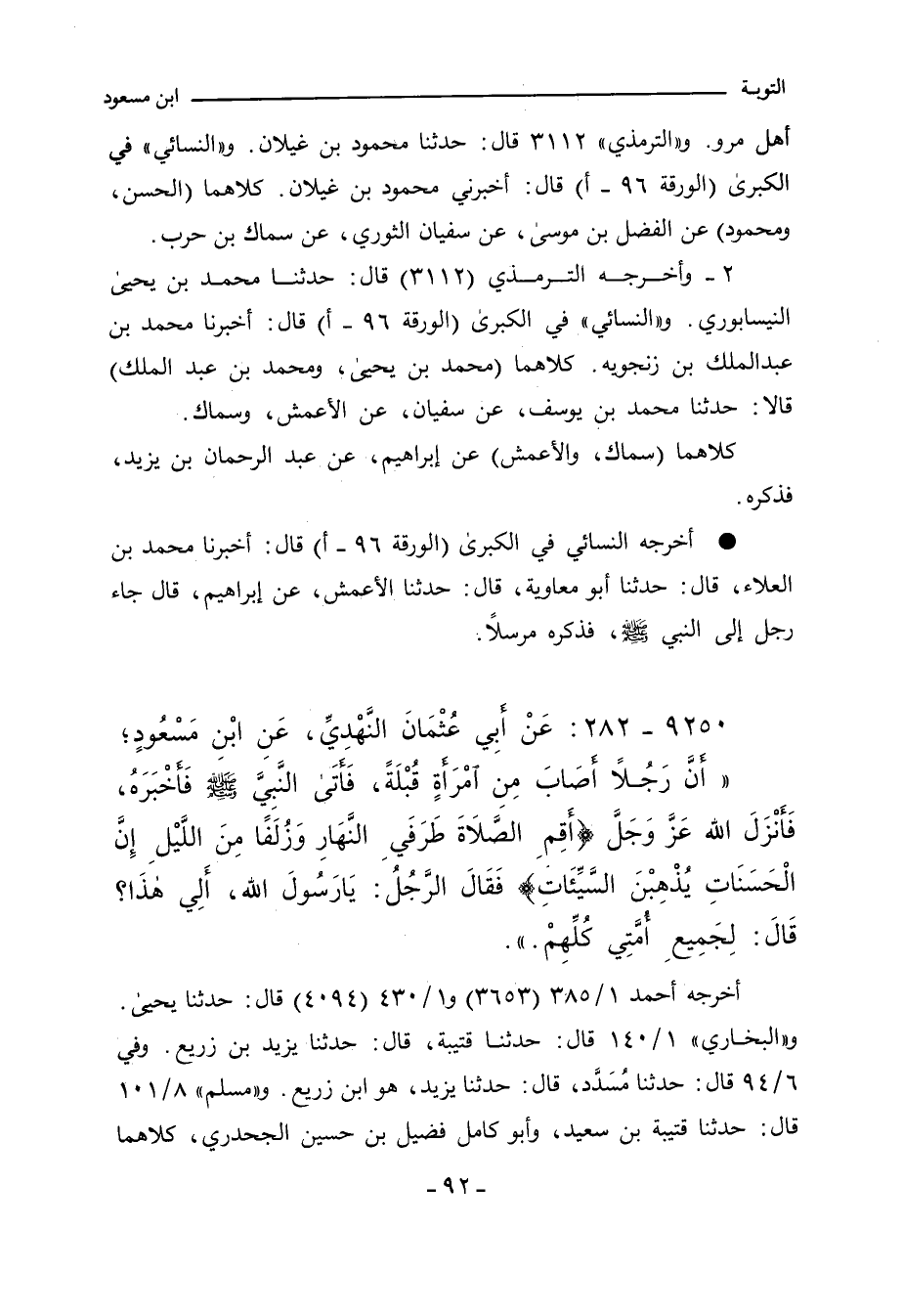٩٢٥٠ - عَنْ أَبِي عُثْمَانَ النَّهْدِيِّ، عَنِ ابْنِ مَسْعُودٍ؛