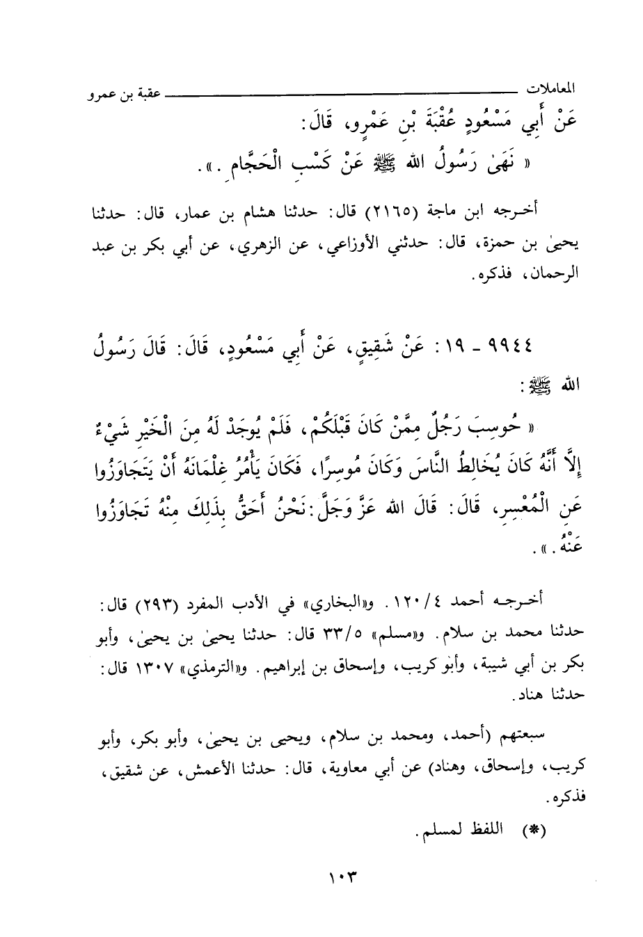 عَنْ أَبِي مَسْعُودٍ، عُقْبَةَ بْنِ عَمْرٍو، قَالَ: