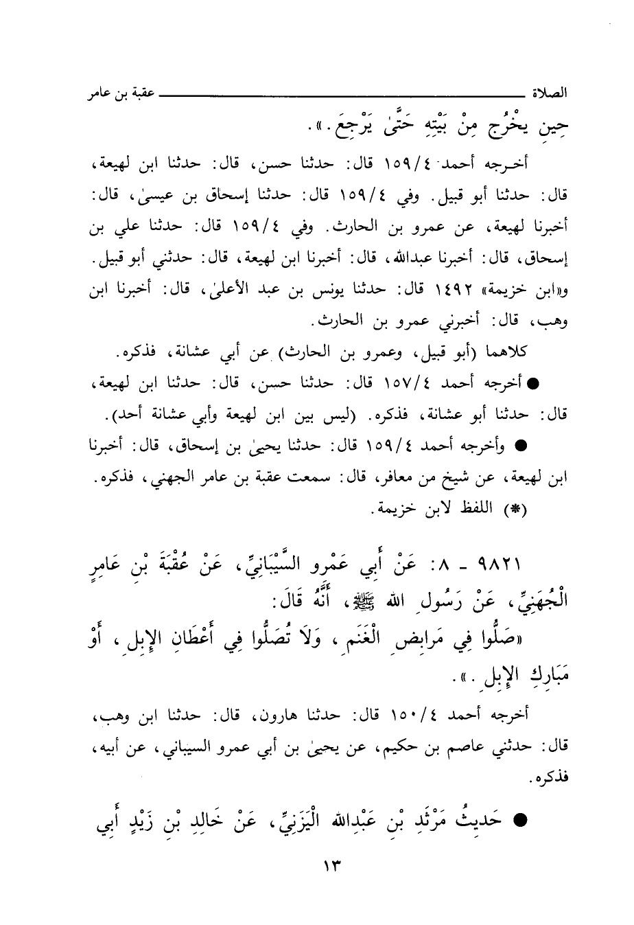 وقال: حدَّثنا ابن وَهْب، حدَّثني عاصم بن حَكِيم، عن يَحيى بن أَبي عَمْرو السَّيْبَانِي، عن أبيه، عن عُقْبَة بن عامر الجُهَنِي، عن رسُولِ اللهِ صلى الله عليه وسلم. بذلك.