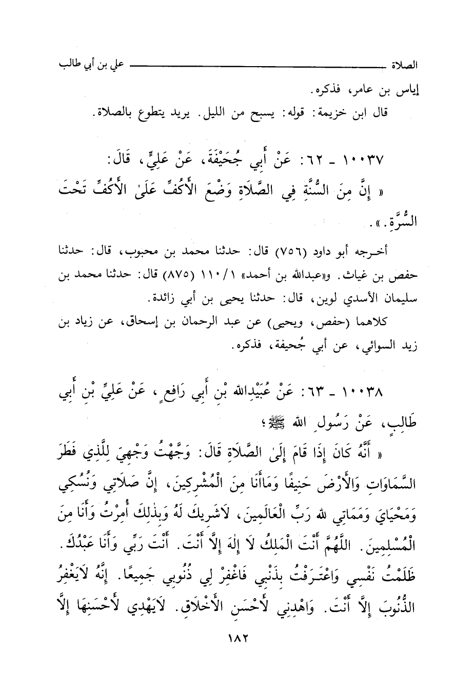 ١٠٠٣٧ - عَنْ أًبِي جُحَيْفَةَ، عَنْ عَلِيٍّ، قَالَ: