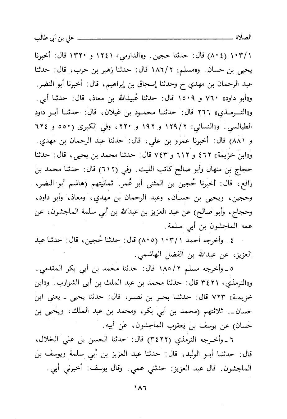 و"أبو داود" ٧٤٤ و ٧٦١ قال: حدَّثنا الحَسَن بن علي، حدَّثنا سُلَيْمان بن داود الهاشمي، حدَّثنا عَبْد الرَّحْمان بن أَبي الزِّنَاد، عن مُوسَى بن عُقْبَة، عن عَبْد الله بن الفَضْل بن رَبِيعة بن الحارث بن عَبْد المُطَّلِب. وفي (٧٦٠ و ١٥٠٩) قال: حدَّثنا عُبَيْد الله بن مُعَاذ، حدَّثنا أَبي، حدَّثنا عَبْد العَزِيز بن أَبي سَلَمَة، عن عَمِّه المَاجِشُون بن أَبي سَلَمَة. و"ابن ماجة" ٨٦٤ قال: حدَّثنا العَبَّاس بن عَبْد العَظِيم العَنْبَرِي، حدَّثنا سُلَيْمان بن داود، أبو أَيُّوب الهاشمي، حدَّثنا عَبْد الرَّحْمان بن أَبي الزِّنَاد، عن مُوسَى بن عُقْبَة، عن عَبْد الله بن الفَضْل. وفي (١٠٥٤) قال: حدَّثنا علي بن عَمْرو الأَنصاري، حدَّثنا يَحيى بن سَعِيد الأُمَوِي، عن ابن جُرَيْج، عن مُوسَى بن عُقْبَة، عن عَبْد الله بن الفَضْل. و"التِّرمِذي" ٢٦٦ قال: حدَّثنا محمود بن غَيْلَان، حدَّثنا أبو داود الطَّيَالِسِي، حدَّثنا عَبْد العَزِيز بن عَبْد الله بن أَبي سَلَمَة المَاجِشُون، حدَّثني عَمِّي. وفي (٣٤٢١) قال: حدَّثنا مُحَمد بن عَبْد الملك بن أَبي الشَّوَارِب، حدَّثنا يُوسُف بن المَاجِشُون، حدَّثني أَبي. وفي (٣٤٢٢) قال: حدَّثنا الحَسَن بن علي الخَلَاّل، حدَّثنا أبو الوَلِيد، حدَّثنا عَبْد العَزِيز بن أَبي سَلَمَة، ويُوسُف بن المَاجِشُون، قال عَبْد العَزِيز: حدَّثني عَمِّي، وقال يُوسُف: أخبربي أَبي. وفي (٣٤٢٣) قال: حدَّثنا الحَسَن بن علي الخَلَاّل، حدَّثنا سُلَيْمان بن داود الهاشمي، حدَّثنا عَبْد الرَّحْمان بن أَبي الزِّنَاد، عن مُوسَى بن عُقْبَة، عن عَبْد الله بن الفَضْل.