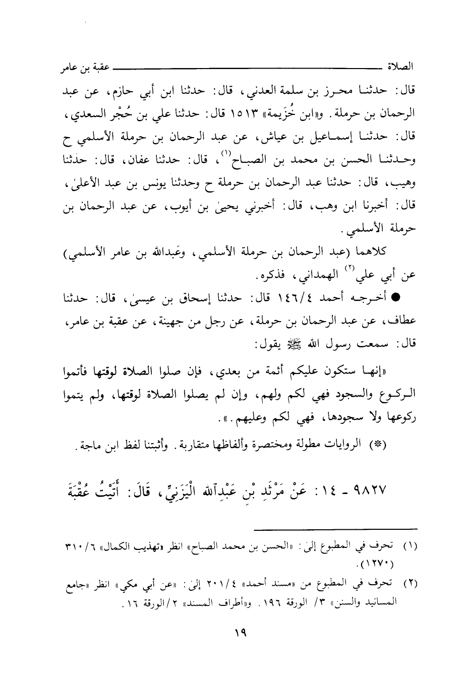 قال: حدَّثنا مُحْرِز بن سَلَمَة العَدَنِي، حدَّثنا ابن أَبي حازم، عن عَبْد الرَّحْمان بن حَرْمَلة. و"ابن خزيمة" ١٥١٣ قال: حدَّثنا علي بن حُجْر السَّعْدِي، حدَّثنا إِسْماعِيل بن عَيَّاش، عن عَبْد الرَّحْمان بن حَرْمَلة الأَسْلَمِي (ح) وحدَّثنا الحَسَن بن مُحَمد بن الصَّبَّاح , حدَّثنا عَفَّان، حدَّثنا وُهَيْب، حدَّثنا عَبْد الرَّحْمان بن حَرْمَلة (ح) وحدَّثنا يُونُس بن عَبْد الأَعْلى، أَخْبَرنا ابن وَهْب، أخبرني يَحيى بن أَيُّوب، عن عَبْد الرَّحْمان ابن حَرْمَلة الأَسْلَمِي.
