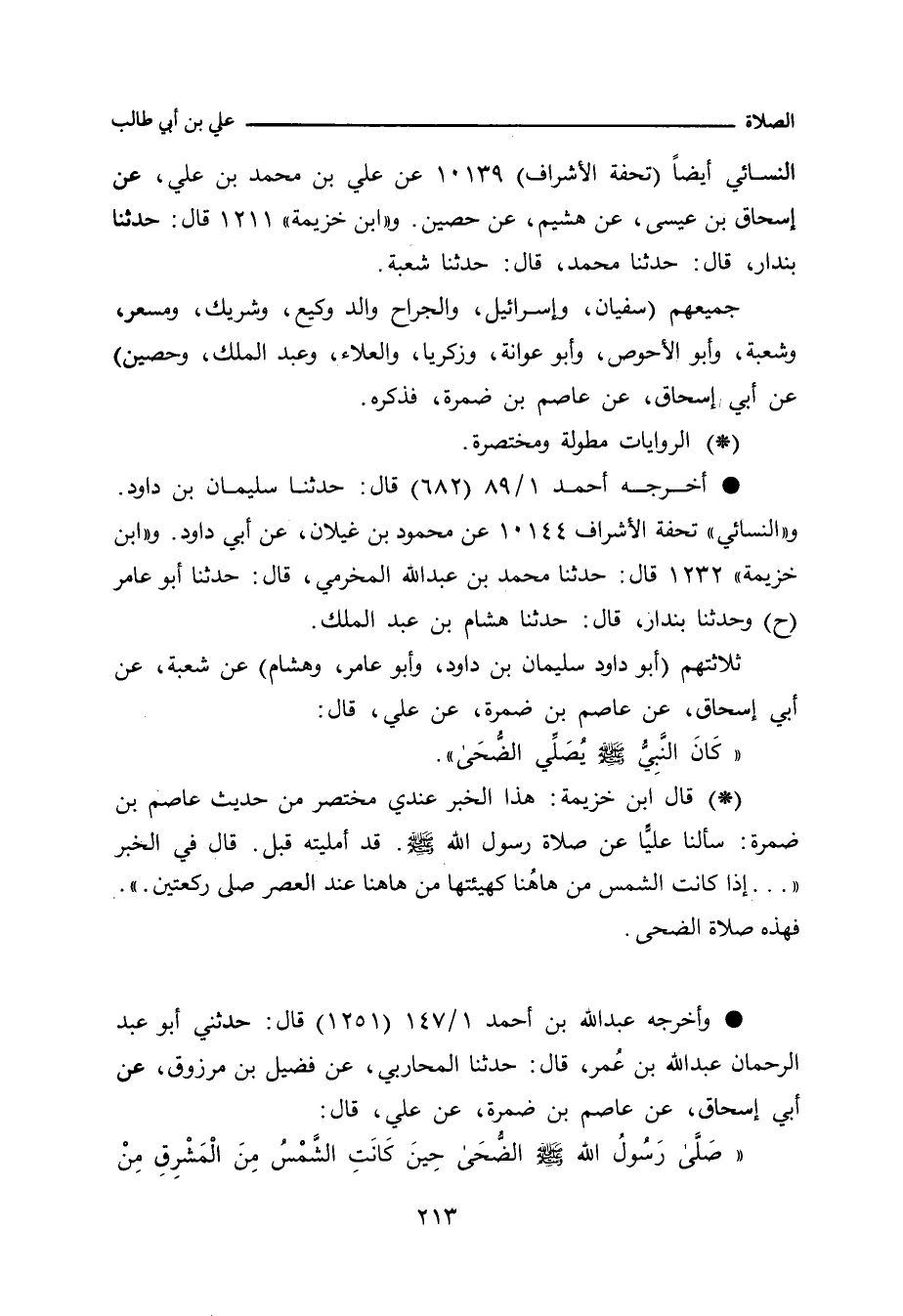 جميعهم (سُفْيان الثَّوْرِي، وإِسْرائِيل، والجَرَّاح والد وَكِيع، وشَرِيك، ومِسْعَر، وشُعْبة، وأبو الأَحْوَص، وأبو عَوَانَة، وزكريا، والعَلَاء، وعَبْد الملك , وحصين) عن أَبي إِسْحاق، عن عاصم بن ضَمْرَة، فذكره.
