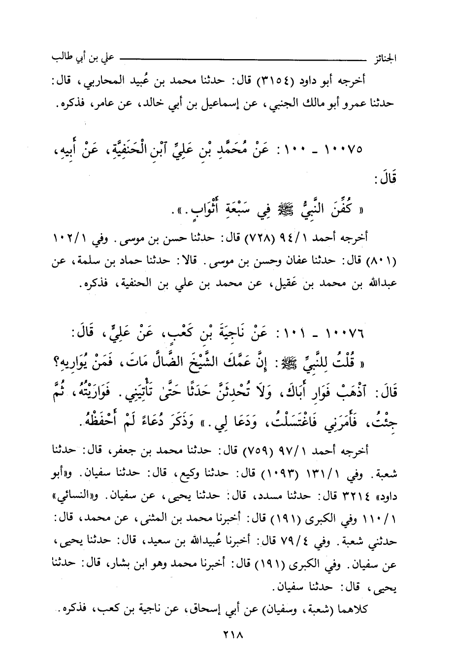 ١٠٠٧٦ - عَنْ نَاجِيَةَ بْنِ كَعْبٍ، عَنْ عَلِيٍّ، قَالَ: