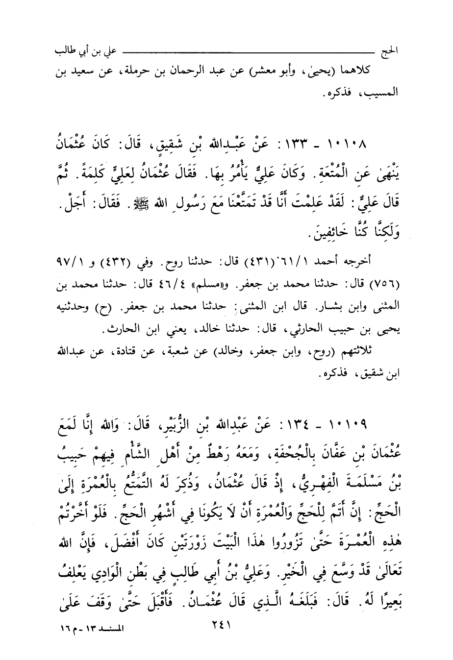 ١٠١٠٨ - عَنْ عَبْدِ اللهِ بْنِ شَقِيقٍ، قَالَ: كَانَ عُثْمَانُ يَنْهَى عَنِ الْمُتْعَةِ، وَعَلِيٌّ يُفْتِي بِهَا، فَقَالَ لَهُ عُثْمَانُ قَوْلاً، فَقَالَ لَهُ عَلِيٌّ: لَقَدْ عَلِمْتَ أَنَّ رَسُولَ اللهِ صلى الله عليه وسلم فَعَلَ ذَلِكَ، قَالَ عُثْمَانُ: أَجَلْ، وَلَكِنَّا كُنَّا خَائِفِينَ.