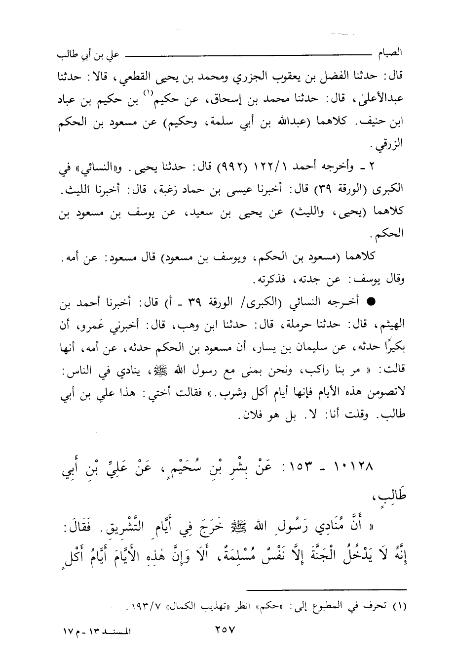 قال: حدَّثنا الفَضْل ابن يَعْقُوب الجَزَرِي، ومُحَمد بن يَحيى القُطَعِي، قالا: حدَّثنا عَبْد الأَعْلى، حدَّثنا مُحَمد بن إِسْحاق، عن حَكِيم بن حَكِيم بن عَبَّاد بن حُنَيْف.