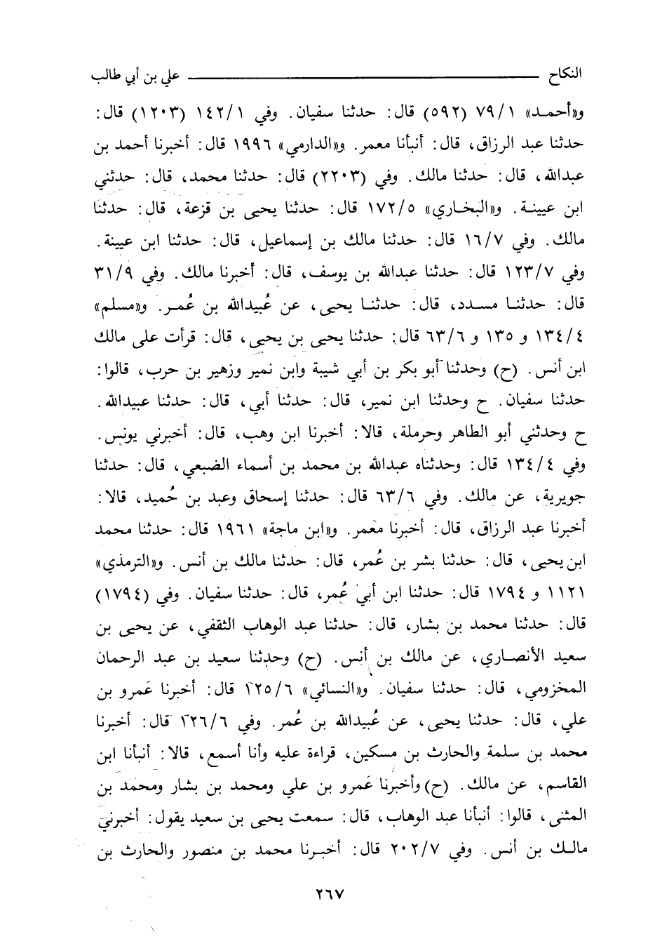 وفي "الكبرى" ٥٥٢٢ قال: أَخْبَرنا عَمْرو بن علي، قال: حدَّثنا يَحيى، عن عُبَيْد الله بن عُمَر. وفي ٦/ ١٢٦، وفي "الكبرى" ٥٥٢٣ قال: أَخْبَرنا مُحَمد بن سَلَمَة، والحارث بن مِسْكِين، قراءةً عليه وأنا أَسْمع، واللفظ له، قال: أنبأنا ابن القاسم، عن مالك. وفي ٦/ ١٢٦، وفي "الكبرى" ٥٥٢٤ قال: أَخْبَرنا عَمْرو بن علي، ومُحَمد بن بَشَّار، ومُحَمد بن المُثَنَّى، قالوا: أنبأنا عَبْد الوَهَّاب، قال: سَمِعْتُ يَحيى بن سَعِيد يقول: أخبرني مالك بن أَنَس. وفي ٧/ ٢٠٢، وفي "الكبرى" ٤٨٢٧ قال: أَخْبَرنا مُحَمد بن مَنْصُور، والحارث بن