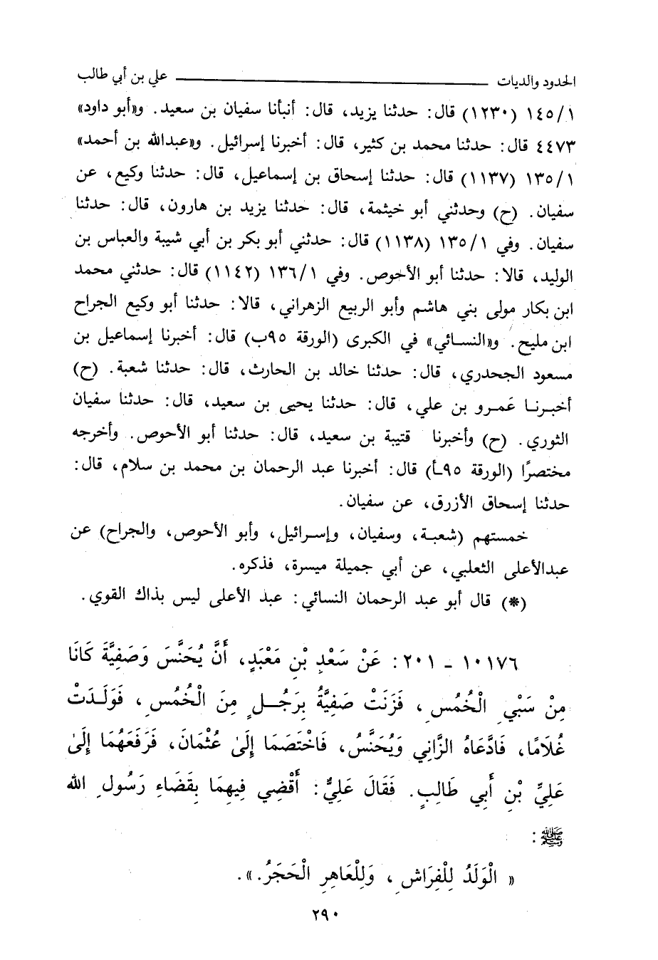 ١/ ١٤٥ (١٢٣١) قال: حدَّثنا يَزِيد، أنبأنا سُفْيان بن سَعِيد. و"أبو داود" ٤٤٧٣ قال: حدَّثنا مُحَمد بن كَثِير، أَخْبَرنا إِسْرائِيل. و (عبد الله بن أحمد) ١/ ١٣٥ (١١٣٧) قال: حدَّثنا إِسْحاق بن إِسْماعِيل، حدَّثنا وَكِيع، عن سُفْيان (ح) وحدَّثني أبو خَيْثَمة، حدَّثنا يَزِيد بن هارون، حدَّثنا سُفْيان. وفي (١١٣٨) قال: حدَّثني أبو بَكْر بن أَبي شَيْبَة، والعَبَّاس بن الوَلِيد النَّرْسِي، قالا: حدَّثنا أبو الأَحْوَص. وفي ١/ ١٣٦ (١١٤٢) قال: حدَّثني مُحَمد بن بَكَّار، مَوْلى بني هاشم، وأبو الرَّبِيع الزَّهْرَانِي، قالا: حدَّثنا أبو وَكِيع، الجَرَّاح بن مَلِيح. و"النَّسَائي" في "الكبرى" ٧٢٠١ قال: أَخْبَرنا عَبْد الرَّحمان بن مُحَمد بن سَلَاّم، قال: حدَّثنا إِسْحاق الأَزْرَق، عن سُفْيان. وفي (٧٢٢٧) قال: أَخْبَرنا إِسْماعِيل بن مَسْعُود الجَحْدَرِي، قال: حدَّثنا خالد بن الحارث، قال: حدَّثنا شُعْبة. وفي (٧٢٢٨) قال: أَخْبَرنا عَمْرو بن علي، عن يَحيى، قال: حدَّثنا سُفْيان الثَّوْرِي. وفي (٧٢٢٩) قال: أَخْبَرنا قُتَيْبة بن سَعِيد، قال: حدَّثنا أبو الأَحْوَص.