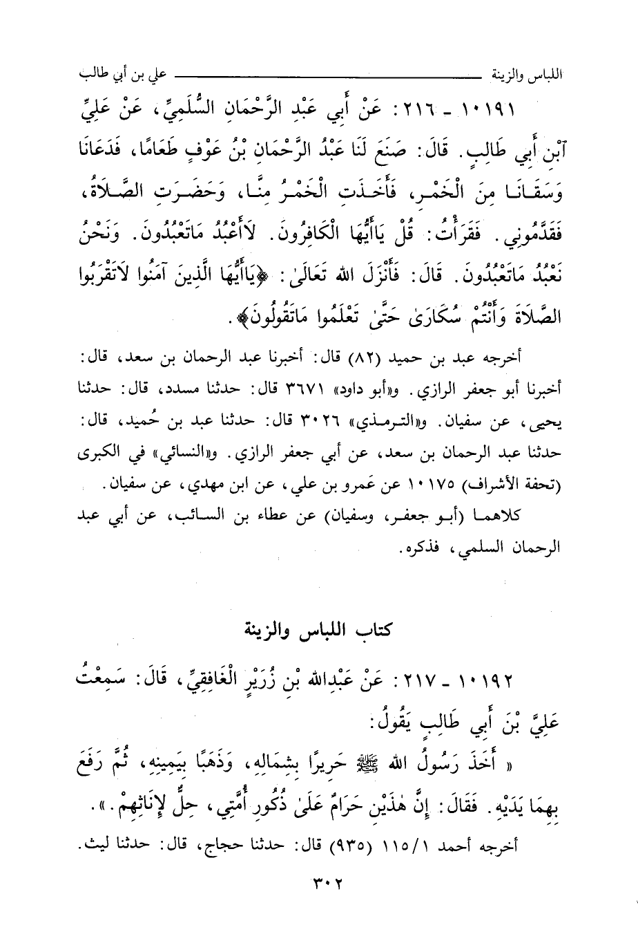 ١٠١٩١ - عَنْ أَبِي عَبْدِ الرَّحْمَانِ السُّلَمِيِّ، عَنْ عَلِيِّ بْنِ أَبِي طَالِبٍ، قَالَ: