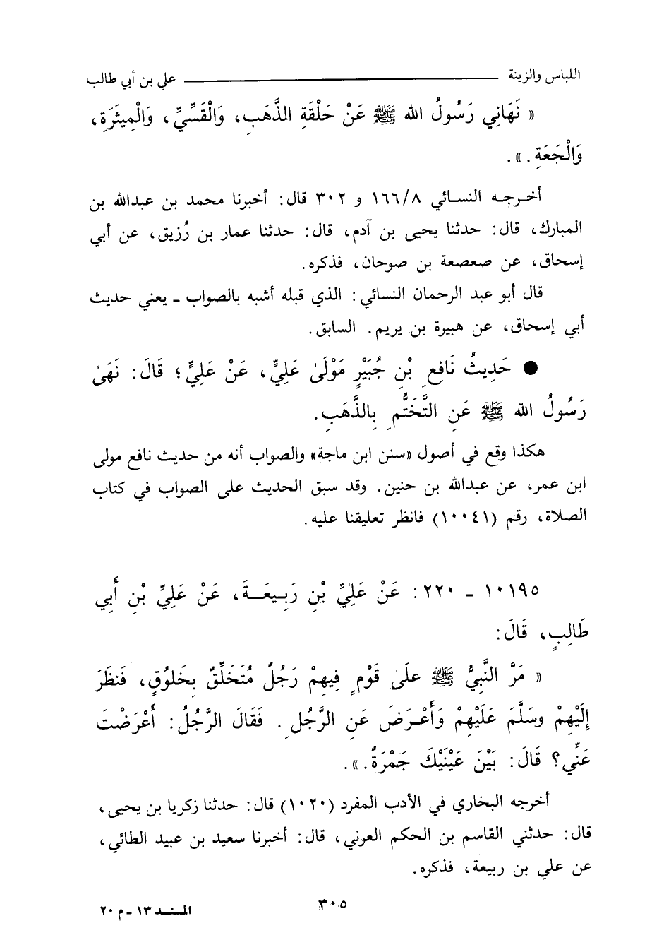 أخرجه النَّسَائِي ٨/ ١٦٦ و ٣٠٢، وفي "الكبرى" ٥١٠١ و ٩٤٠٧ قال: أَخْبَرنا مُحَمد بن عَبْد الله بن المُبَارك، قال: حدَّثنا يَحيى بن آدم، قال: حدَّثنا عَمَّار بن رُزَيْق، عن أَبي إِسْحاق، عن صَعْصَعَة بن صُوحَان، فذكره.