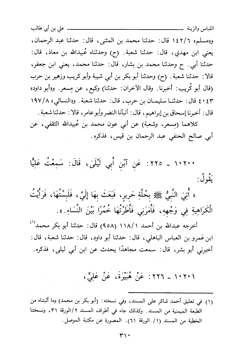 أخرجه عَبْد الله بن أحمد ١/ ١١٨ (٩٥٨) قال: حدَّثنا أبو بَكْر مُحَمد بن عَمْرو بن العَبَّاس الباهلي، حدَّثنا أبو داود، حدَّثنا شُعْبة، أخبرني أبو بِشْر، سَمِعْتُ مُجَاهِدًا يُحدِّث، عن ابن أَبي لَيْلَى، فذكره.