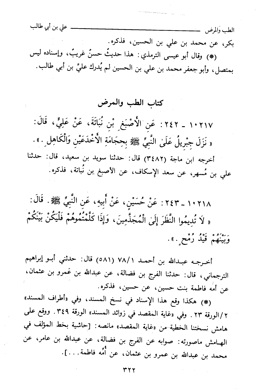 ١٠٢١٨ - عَنْ حُسَيْنِ بْنِ عَلِيٍّ، عَنْ أَبِيهِ، عَنِ النَّبِيِّ صلى الله عليه وسلم، قَالَ: