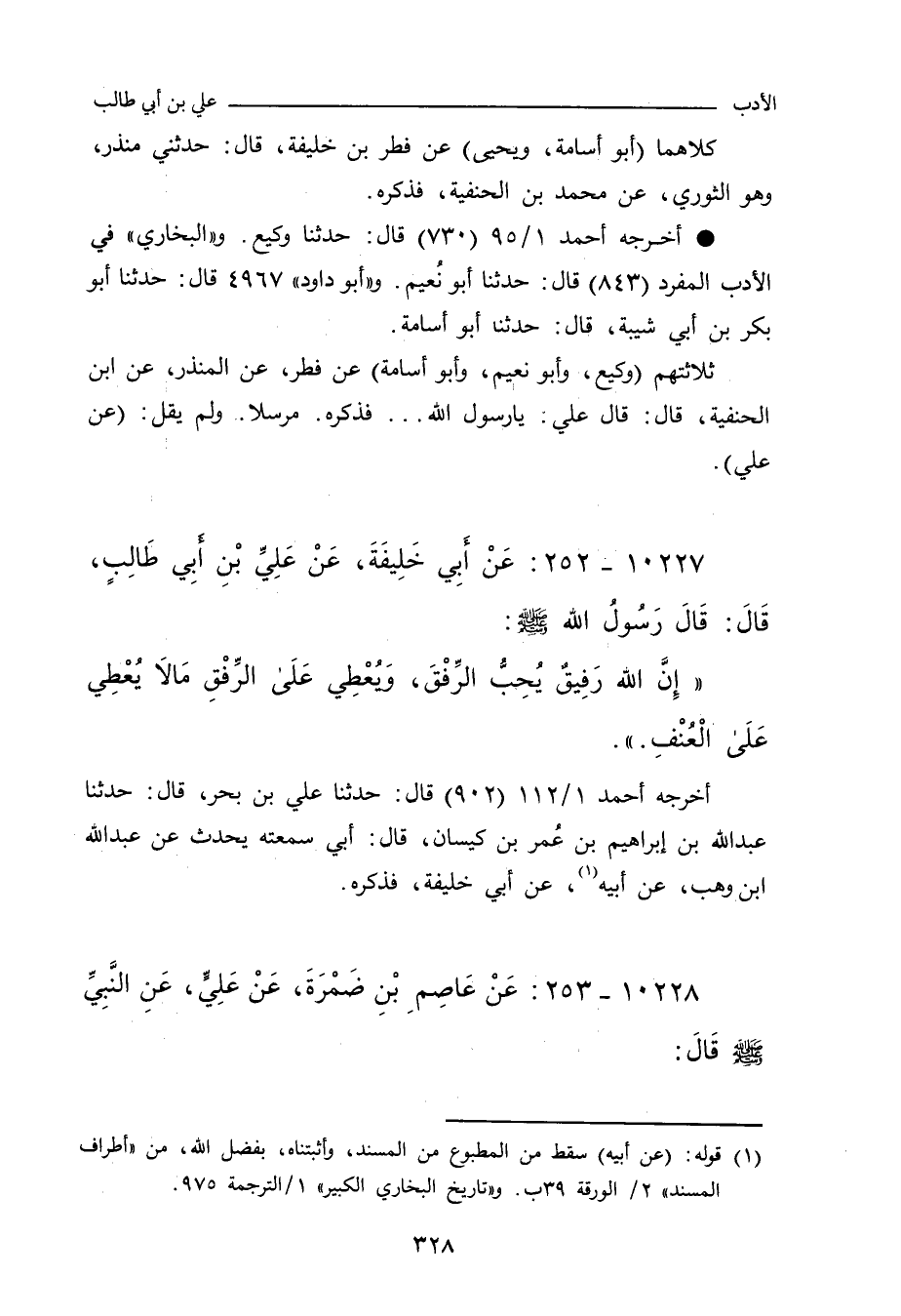 أخرجه أحمد ١/ ١١٢ (٩٠٢) قال: حدَّثنا علي بن بَحْر، حدَّثنا عَبْد الله بن إبراهيم بن عُمَر بن كَيْسَان، قال: أَبي سَمِعْتُهُ يُحَدِّث، عن عَبْد الله بن وَهْب، عن أَبي خَلِيفَة، عَنْ عَلِيِّ بْنِ أَبِي طَالِبٍ، قَالَ: قَالَ رَسُولُ اللهِ صلى الله عليه وسلم: