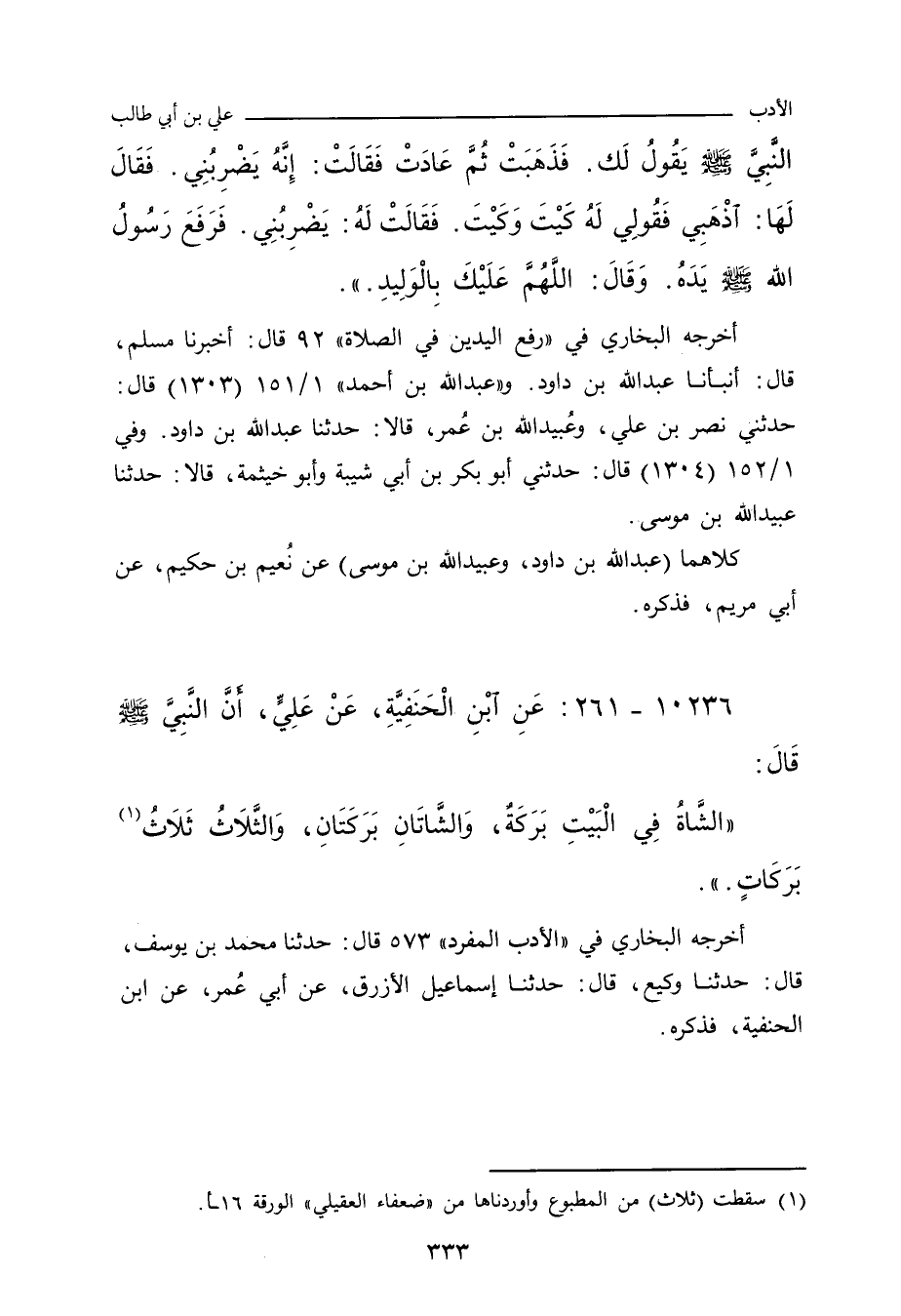 ١٠٢٣٦ - عَنِ ابْنِ الْحَنَفِيَّةِ، عَنْ عَلِيٍّ، رَضِيَ اللَّهُ عَنْهُ، أَنَّ النَّبِيَّ صلى الله عليه وسلم قَالَ: