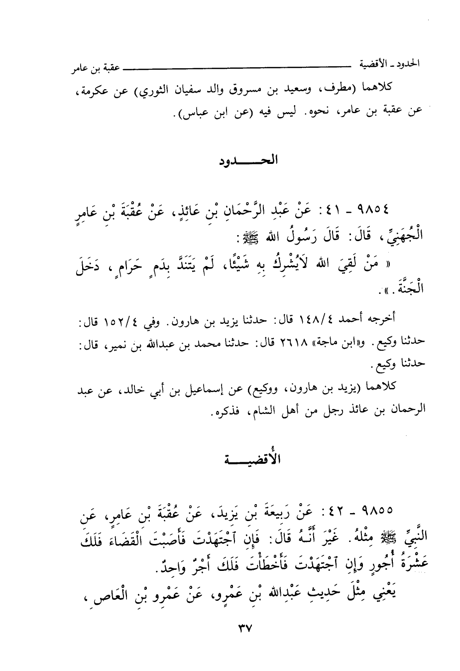 ٩٨٥٤ - عَنْ عَبْدِ الرَّحْمَانِ بْنِ عَائِذٍ، عَنْ عُقْبَةَ بْنِ عَامِرٍ الْجُهَنِىِّ، قَالَ: قَالَ رَسُولُ اللهِ صلى الله عليه وسلم: