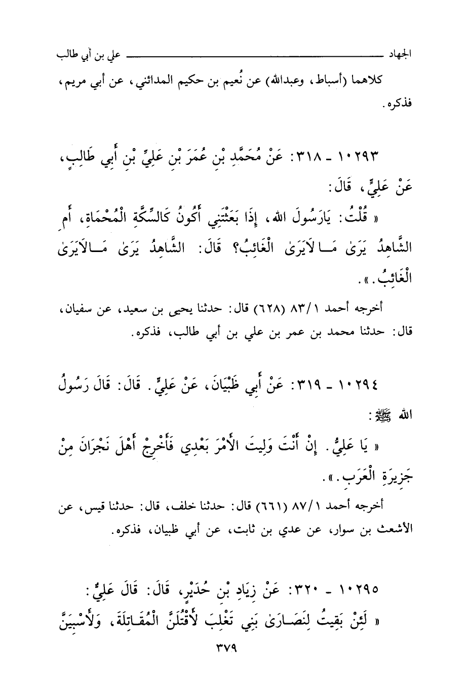 ١٠٢٩٤ - عَنْ أَبِي ظَبْيَانَ , عَنْ عَلِيٍّ، قَالَ: قَالَ رَسُولُ اللهِ صلى الله عليه وسلم: