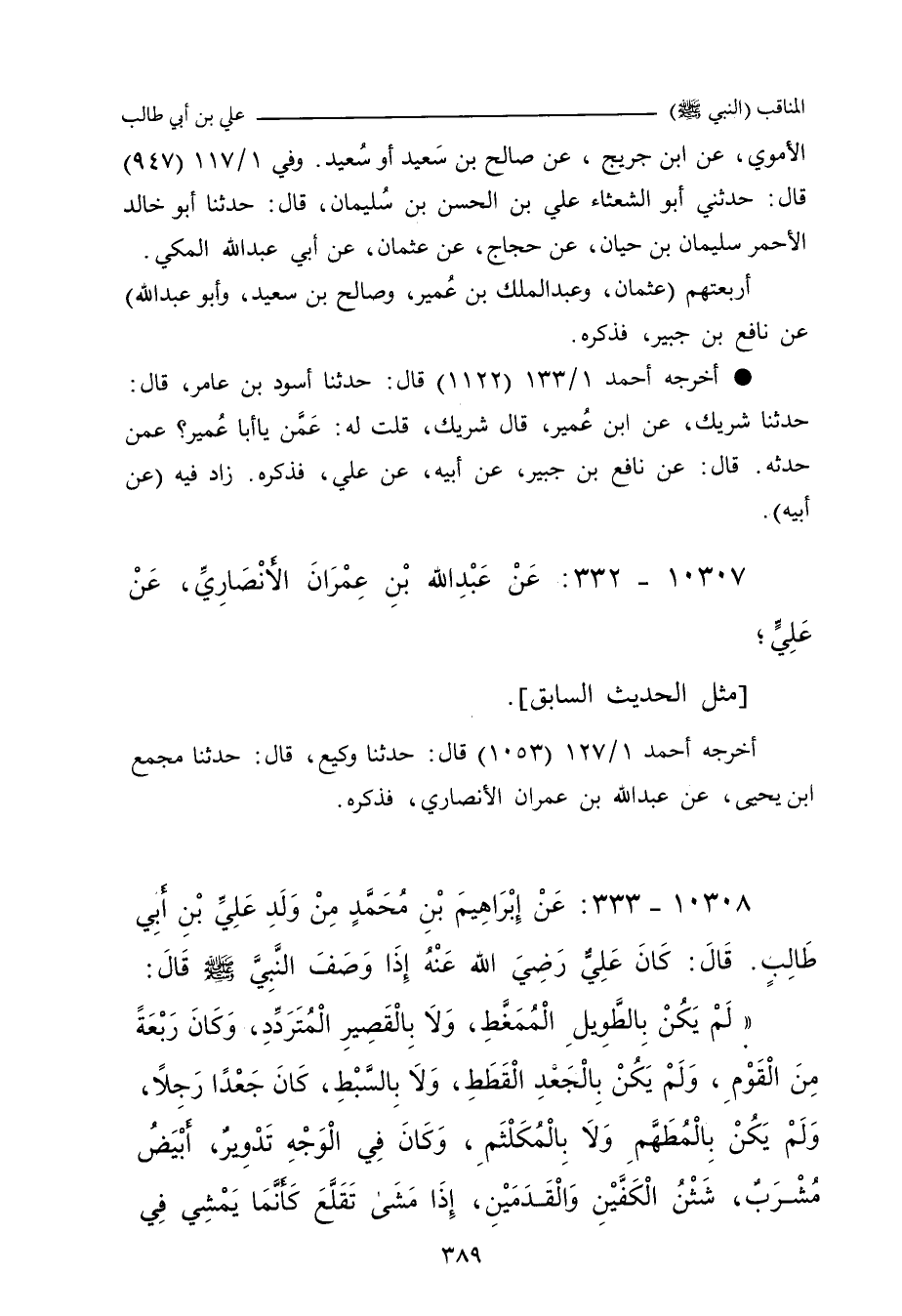 الأُمَوِي , عن ابن جُرَيْج , عن صالح بن سَعِيد، أو سُعَيد. وفي ١/ ١١٧ (٩٤٧) قال: حدَّثني أبو الشَّعْثَاء، علي بن الحَسَن بن سُلَيْمان، حدَّثنا أبوخالد الأَحْمَر، سُلَيْمان بن حَيَّان , عن حَجَّاج , عن عُثْمان , عن أَبي عَبْد الله المَكِّي.