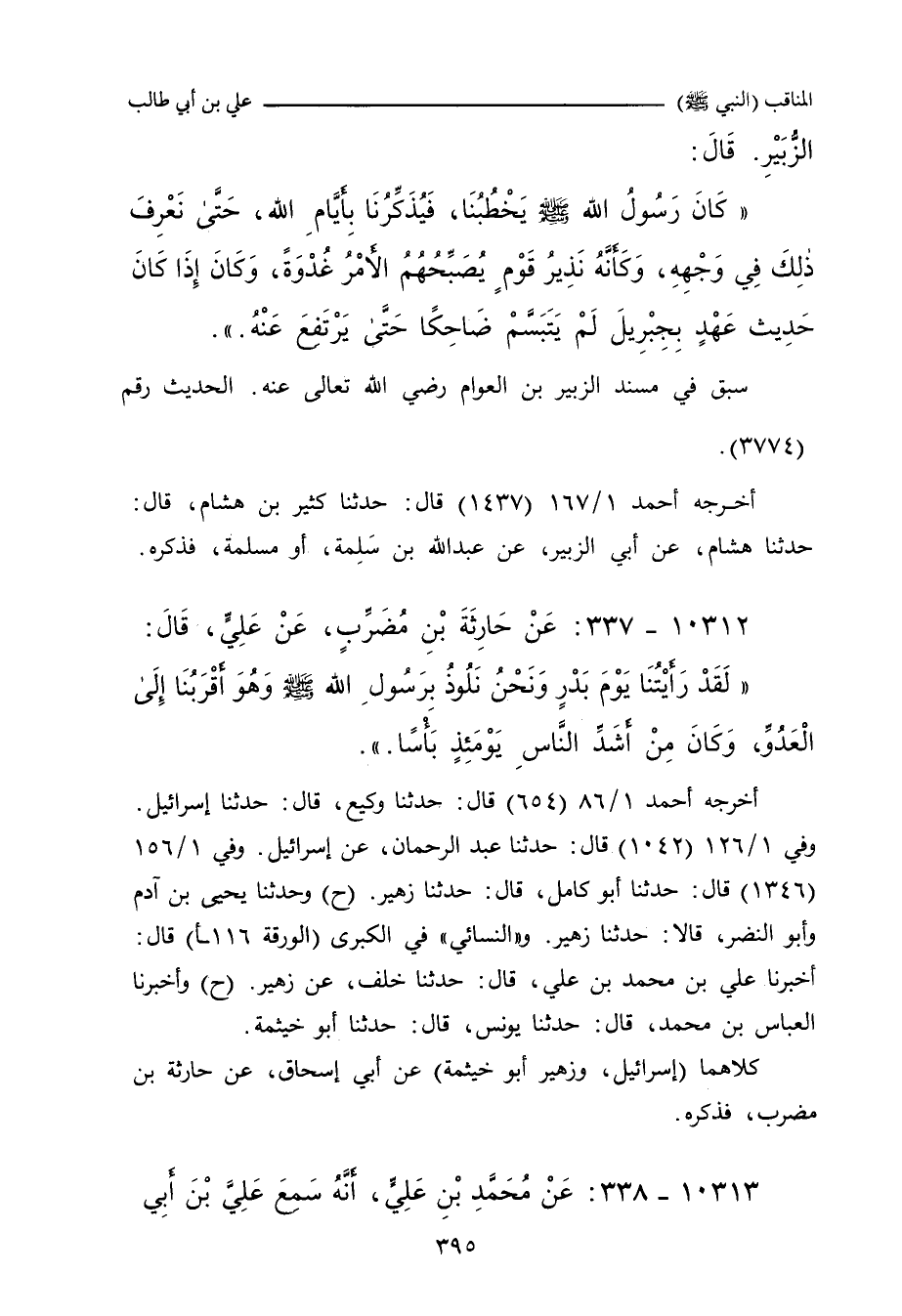 سلف في مسند الزُّبَيْر بن العَوَّام، رضي الله تعالى عنه، الحديث رقم (٣٧٧٤.