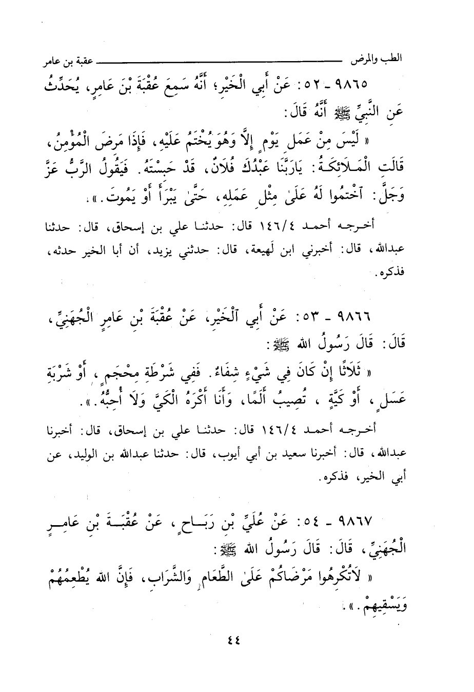 ٩٨٦٦ - عَنْ أَبِي الْخَيْرِ، عَنْ عُقْبَةَ بْنِ عَامِرٍ الْجُهَنِيِّ، قَالَ: قَالَ رَسُولُ اللهِ صلى الله عليه وسلم: