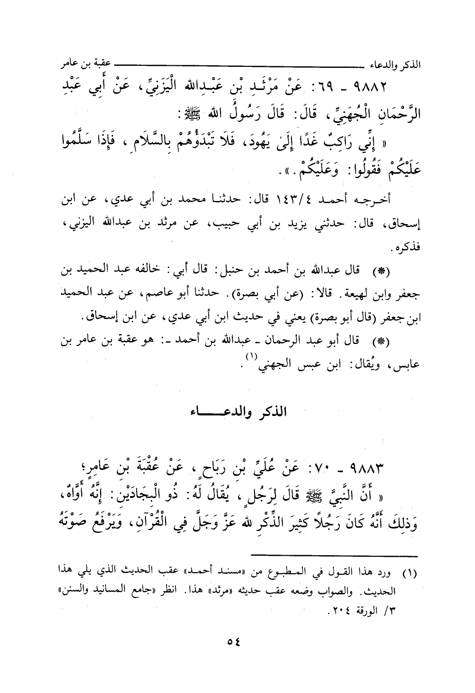 ٩٨٨٣ - عَنْ عُلَيِّ بْنِ رَبَاحٍ، عَنْ عُقْبَةَ بْنِ عَامِرٍ؛