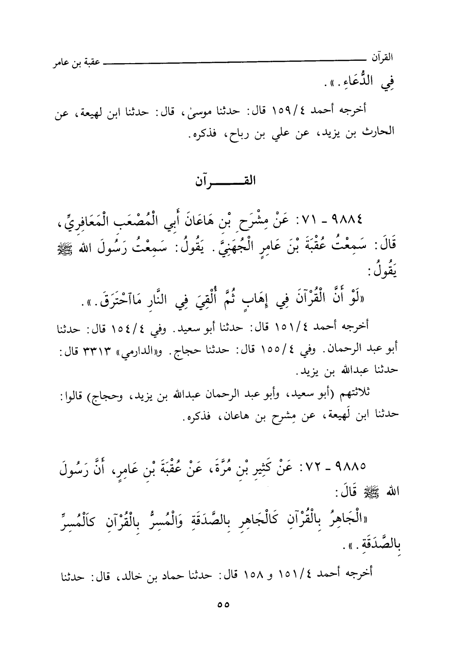 ٩٨٨٥ - عَنْ كَثِيرِ بْنِ مُرَّةَ، عَنْ عُقْبَةَ بْنِ عَامِرٍ، قَالَ: قَالَ رَسُولُ اللهِ صلى الله عليه وسلم:
