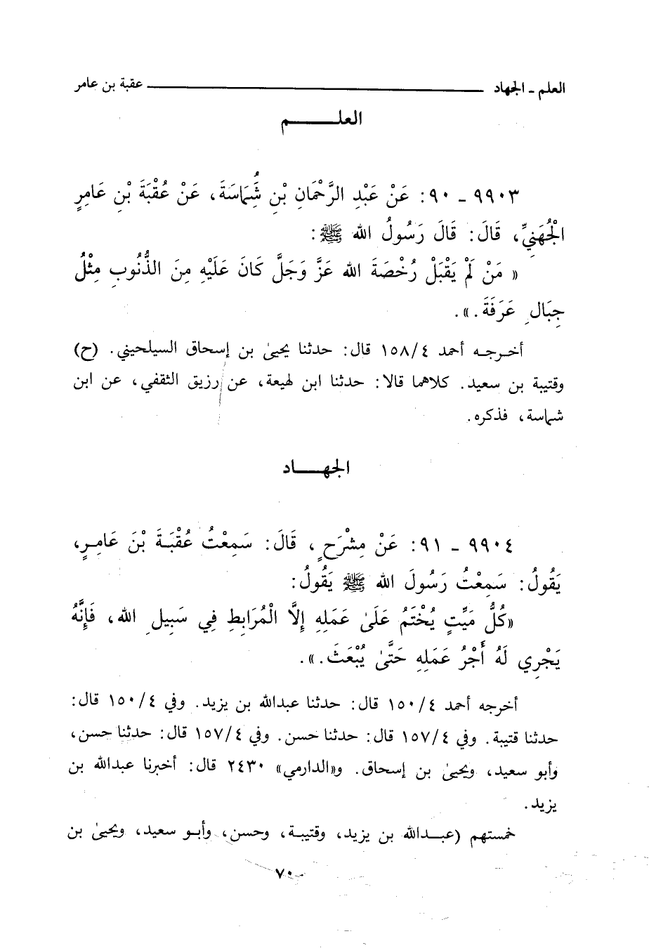 ٩٩٠٣ - عَنْ عَبْدِ الرَّحْمَانِ بْنِ شَِمَاسَةَ، عَنْ عُقْبَةَ بْنِ عَامِرٍ الْجُهَنِيِّ، قَالَ: قَالَ رَسُولُ اللهِ صلى الله عليه وسلم:
