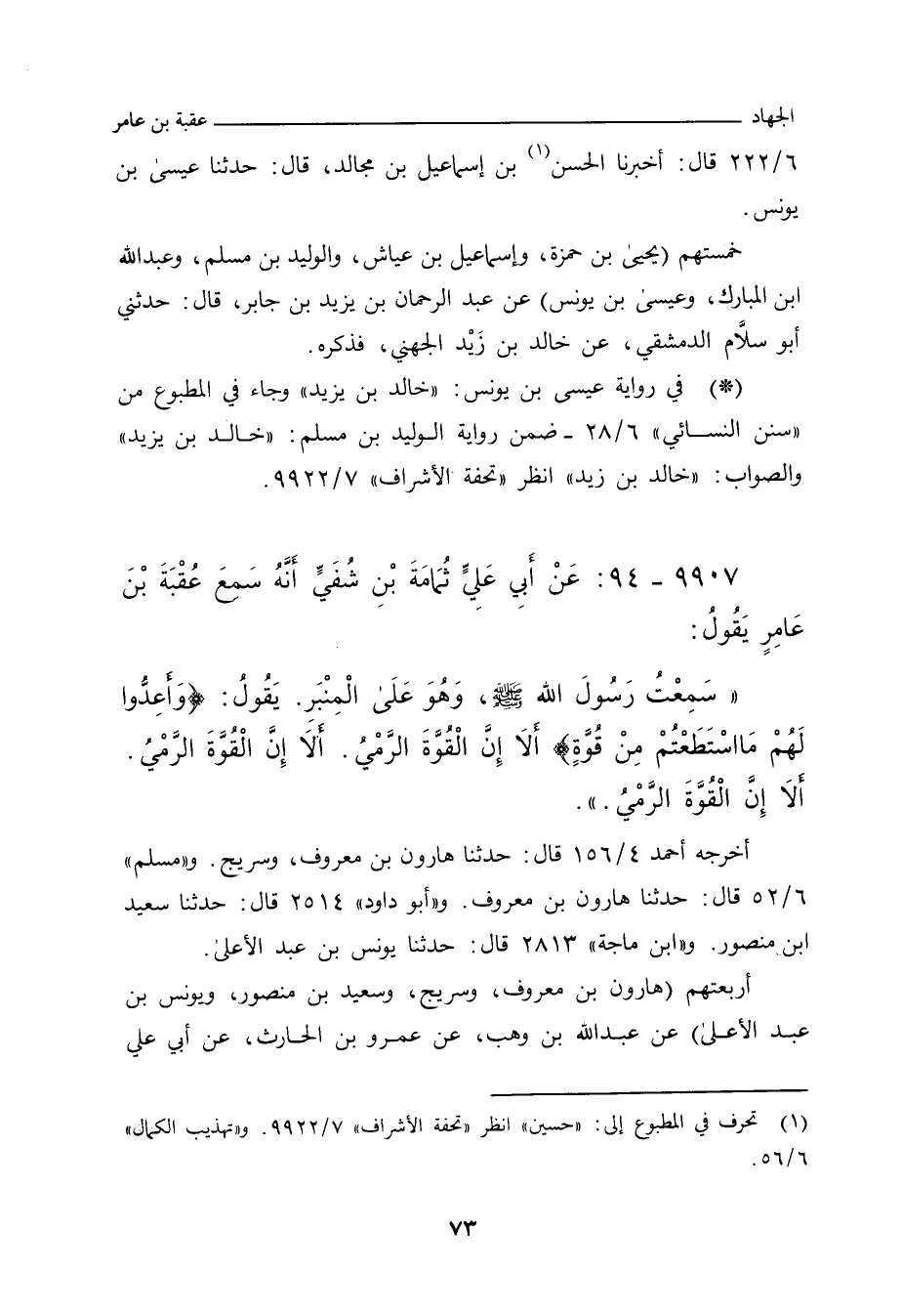 ٩٩٠٧ - عَنْ أَبِي عَلِيٍّ، ثُمَامَةَ بْنِ شُفَيٍّ، أَنَّهُ سَمِعَ عُقْبَةَ بْنَ عَامِرٍ يَقُولُ: